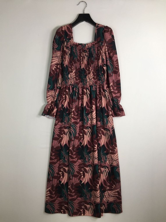 Descrizione Camicia Dritto Midi Floreale in Crepe Manica lunga, Manica a palloncino, Arricciato, Con balze, Elastico in vita