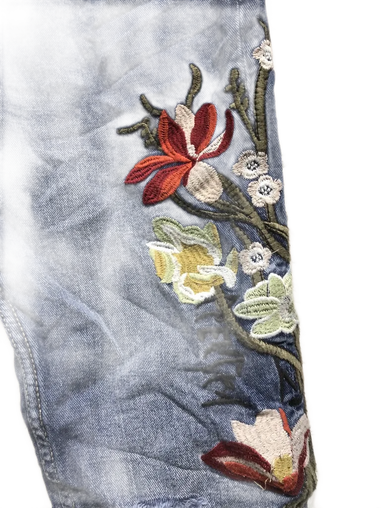 Jeans Slim Floreale in Denim Con ricami, Con tasche